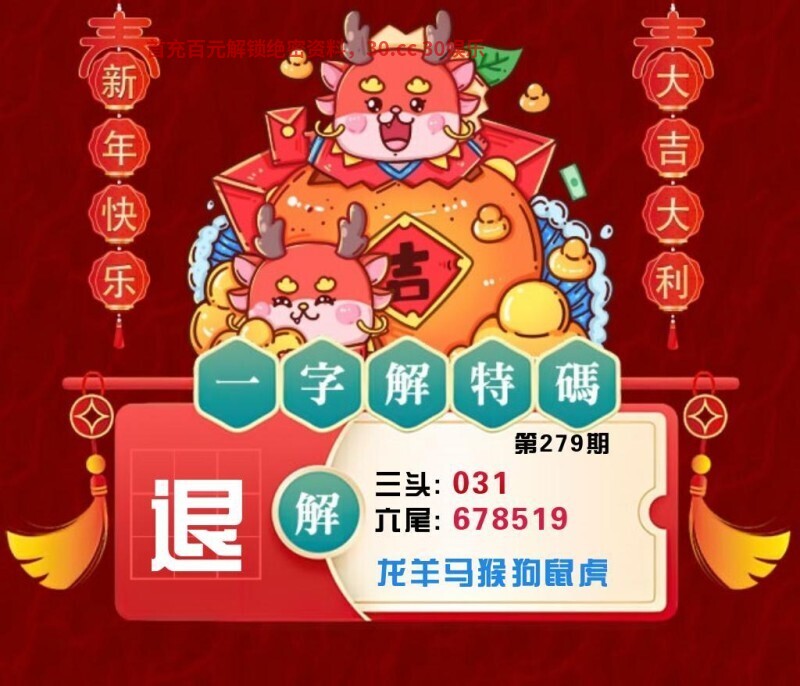 279期:神算六肖【龙鼠猴牛猪开兔27准